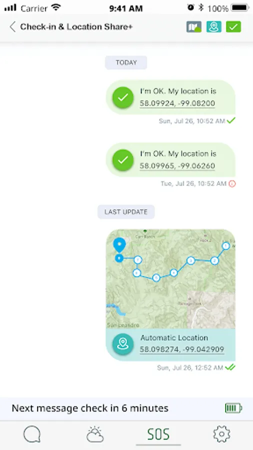 * LOCATION SHARE+: Share your location with up to five check-in contacts on a selected interval from every six (6) minutes to every four (4) hours. Both ZOLEO users and check-in recipients can use the free ZOLEO app to view their current location and full breadcrumb trail on a map.