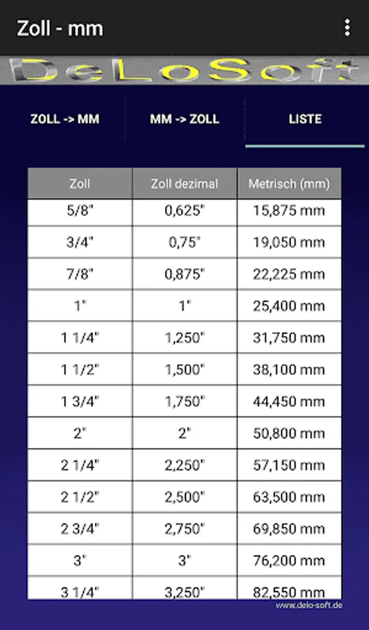 This little app calculates you mm in inches or inches in mm order. And as a table, there are inch dimensions in the form of decimal fractions.