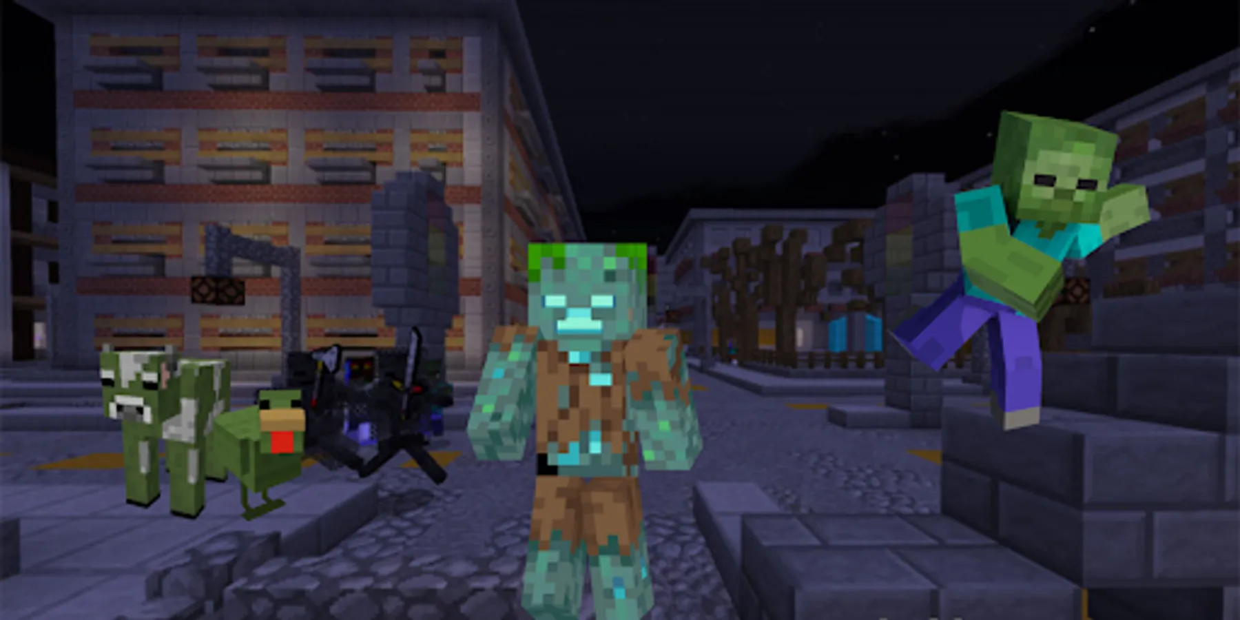 Zombie Mods for Minecraft PE is a modification that will turn a classic game into a real Survival! Cubic space will be full of bloodthirsty creatures that destroy everything in their path! You will have to try hard to protect your houses and buildings from evil monsters.