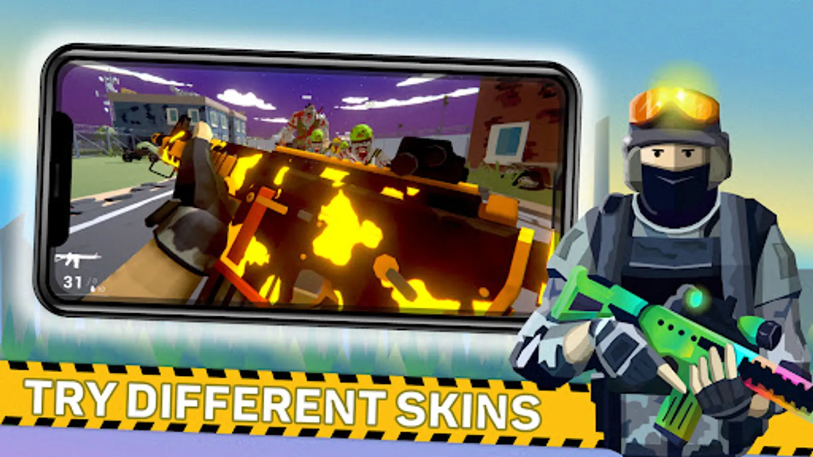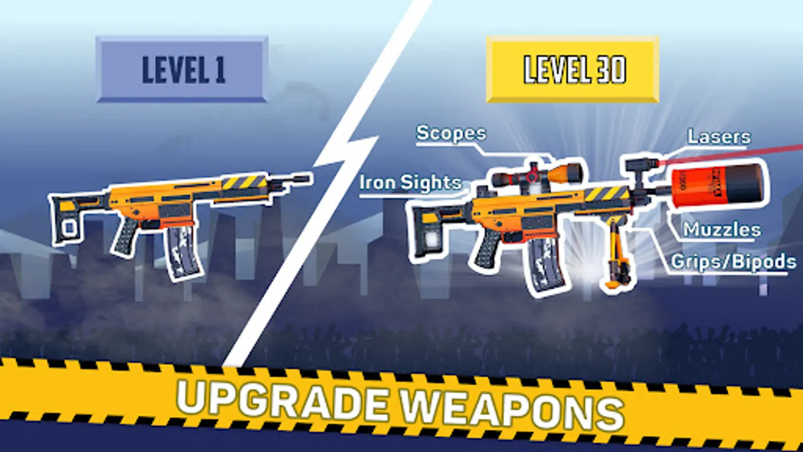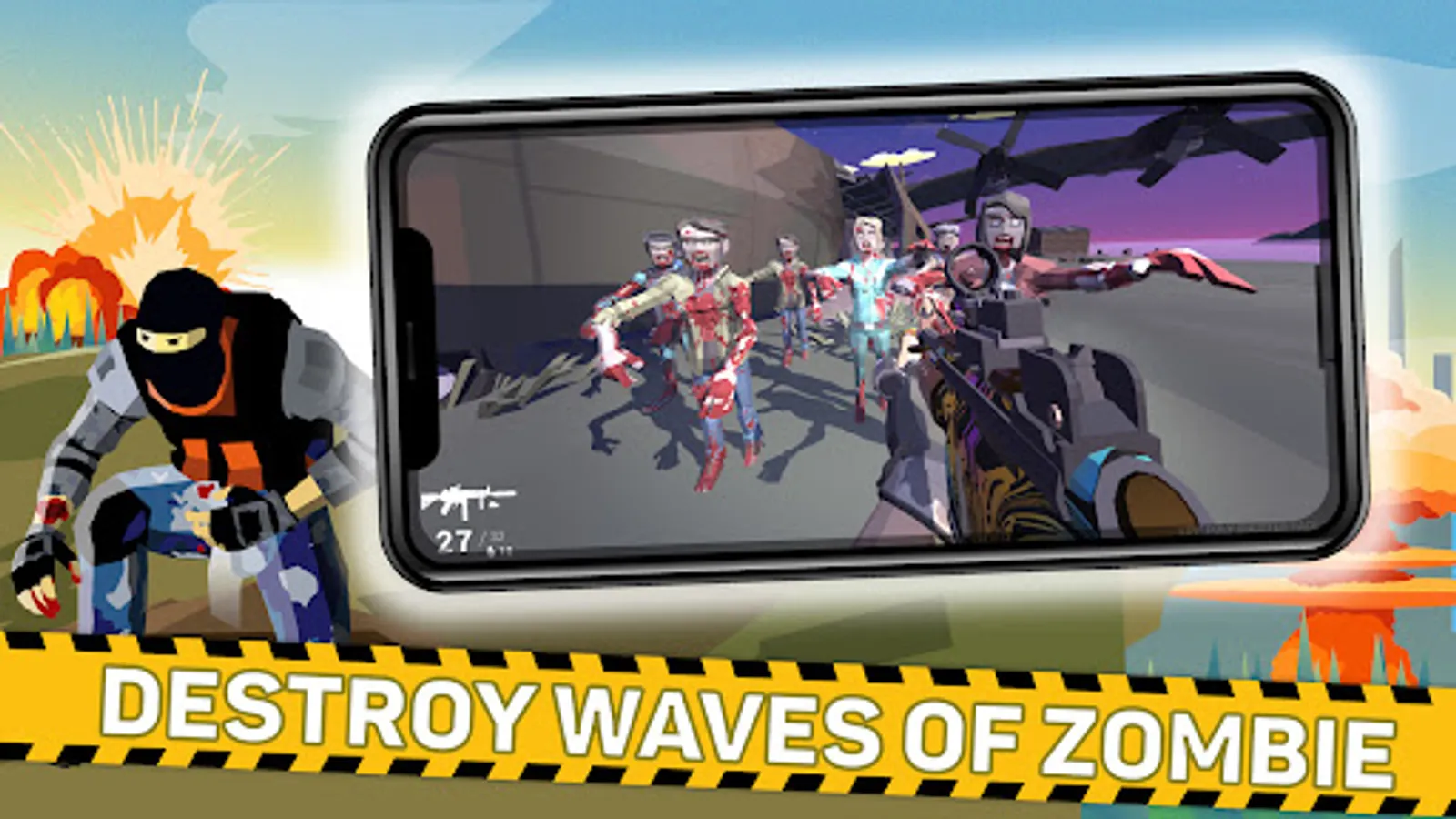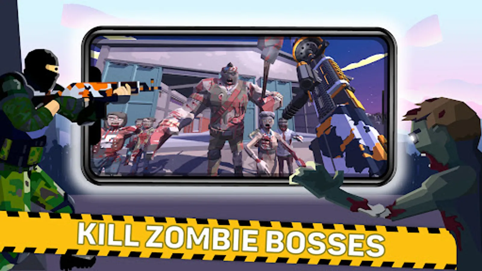 • A variety of enemies such as fast zombies, strong zombies Boss Zombies and more