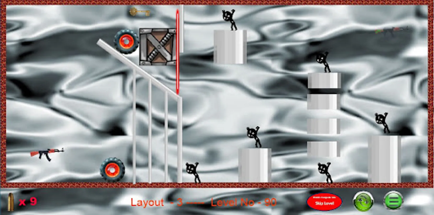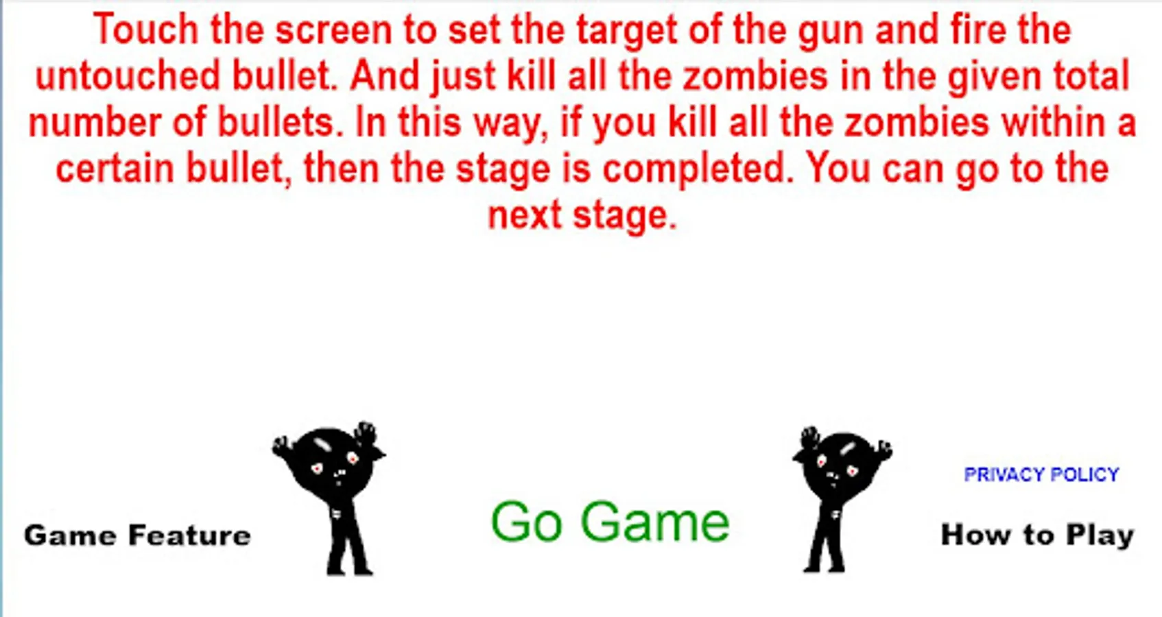 " Touch the screen to set the target of the gun and fire the untouched bullet. And just kill all the zombies in the given total number of bullets. In this way, if you kill all the zombies within a certain bullet, then the stage is completed. You can go to the next stage."