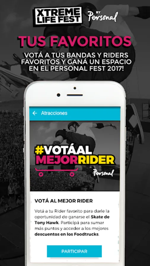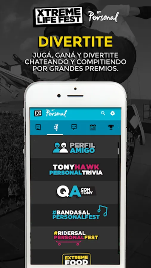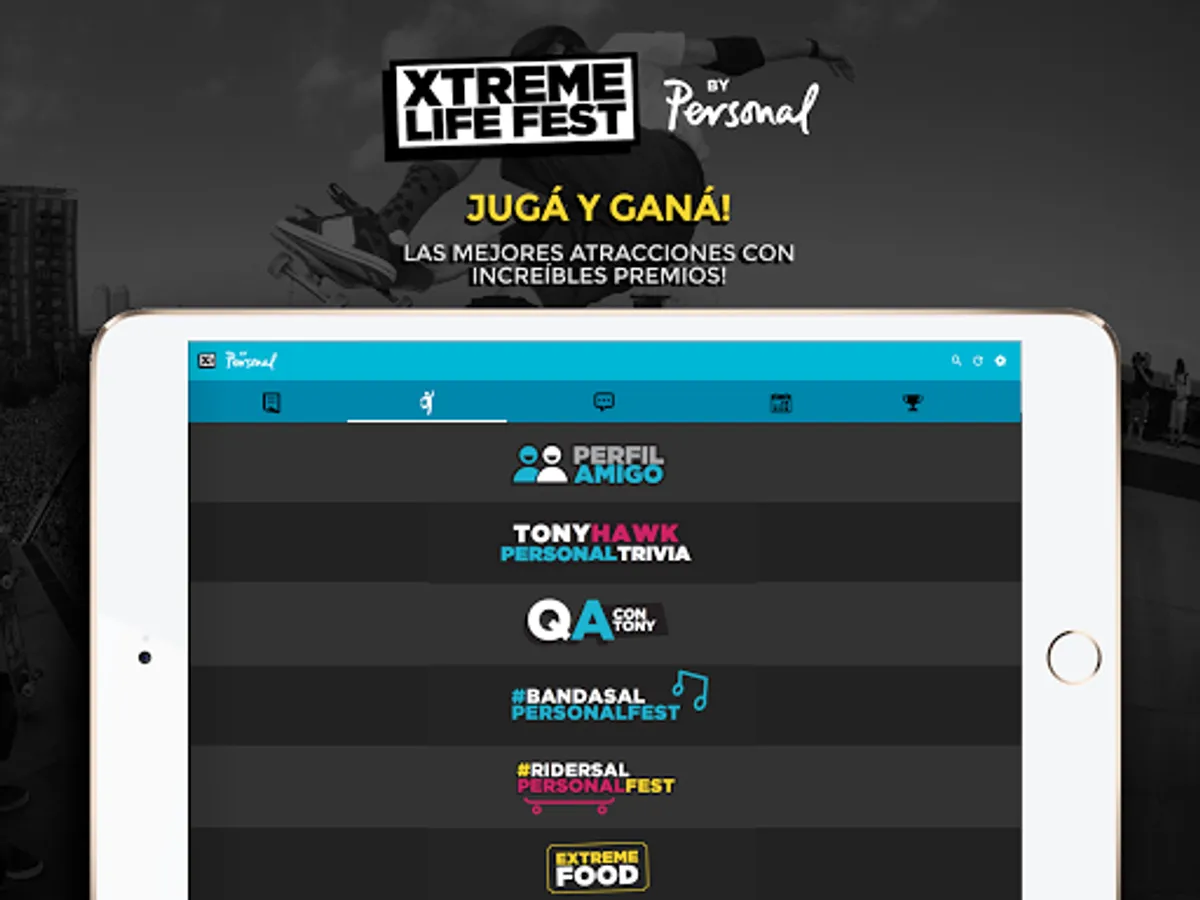 Bajate the app extreme sports festival Xtreme Personal Life Fest. Jugá and win prizes while enjoying the event.