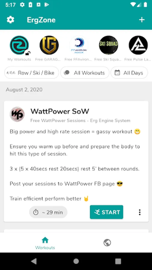 ErgZone is an app made for athletes using Concept2 equipments for indoor rowing, indoor skiing and indoor cycling.