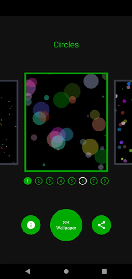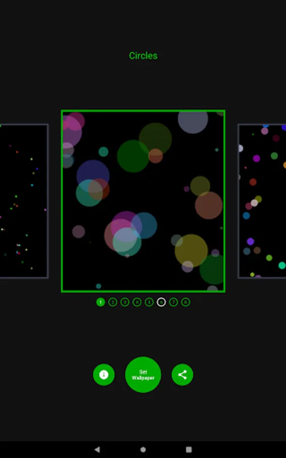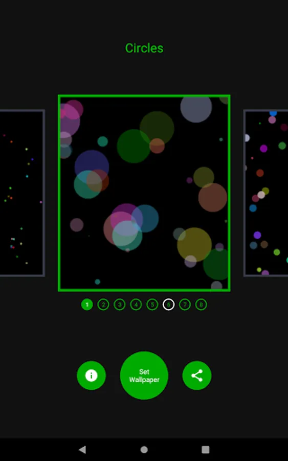 Watch the amazing multicolored translucent circles animate on your screen by trying out the various presets. You can also set it as a live wallpaper, a lock screen or both.
