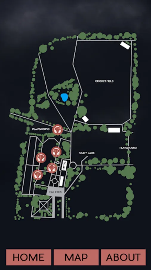 The app is geo-located in Chalkwell Park, Southend-on-Sea, Essex, UK and so you’ll have to physically go there if you want to experience it. 5 chapters can be listened to in different locations within the park, forging a relationship between the story, the location, and your presence within it. A map within the app will show you where each chapter can be found. Walk into the GPS zones and audio will automatically play.
