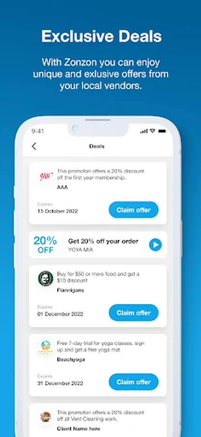 Zonzon gives members one-click access to local vendors like house cleaners, pet groomers, insurance agents, plumbers, restaurants and more. Vendors can create hyper local deals and build a viral loyal network within micro communities. Members get access and discounts from neighbor-rated local vendors.