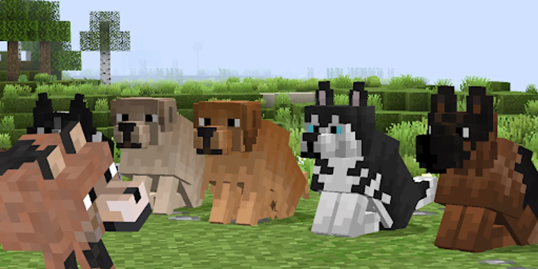 Dog Mod for Minecraft is a cool modification that adds various animal breeds to the classic game. Have you wanted to get a pet for a long time, but don't have the opportunity in real life? Make it virtual! These loyal companions will delight every player. Dogs help fight monsters, protect the house and become a wonderful company to spend time