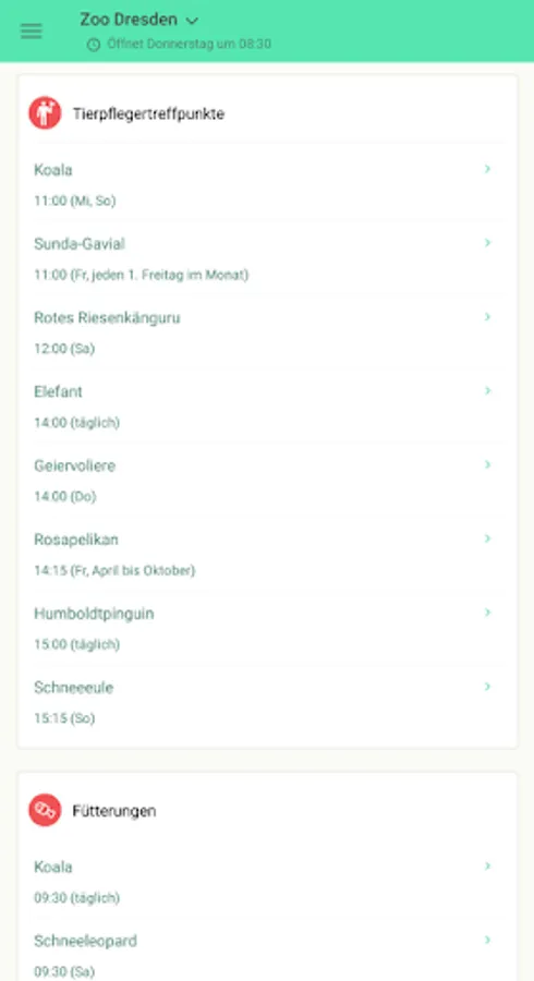 We are a multi-zoo app and already have the Dresden Zoo, the Leipzig Zoo, the Wilhelma in Stuttgart, the Hellabrunn Zoo in Munich, the Augsburg Zoo, the Braunschweig Zoo, the Duisburg Zoo, the Berlin Zoo, the Heidelberg Zoo, the Hanover Adventure Zoo, Frankfurt Zoo, Lüneburg Heath Wildlife Park, Karlsruhe Zoo, Nuremberg Zoo, Osnabrück Zoo, Cologne Zoo, Hoyerswerda Zoo and Hagenbeck Zoo. More zoos and animal parks will be going live soon - so it's worth checking the app regularly.
