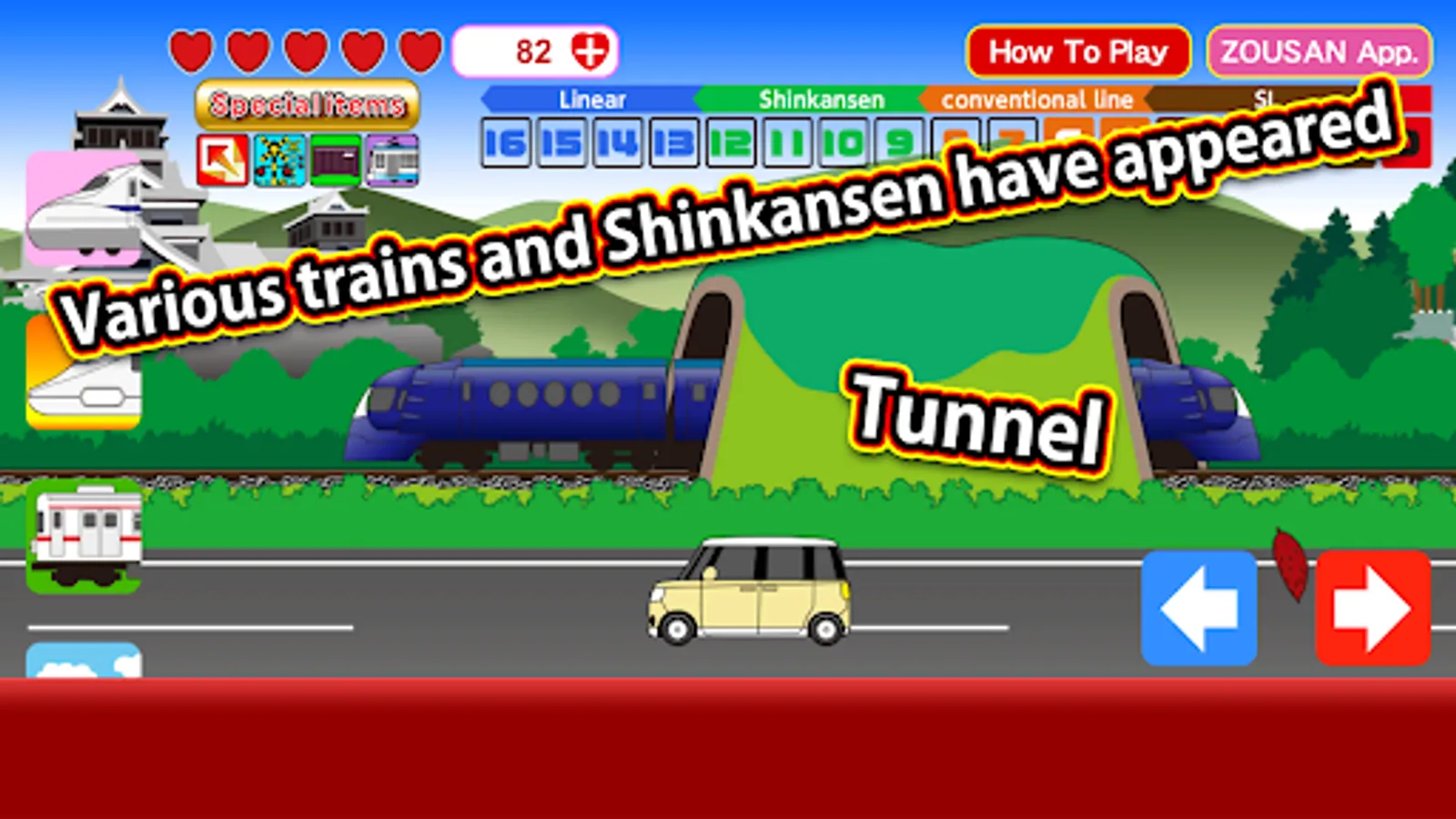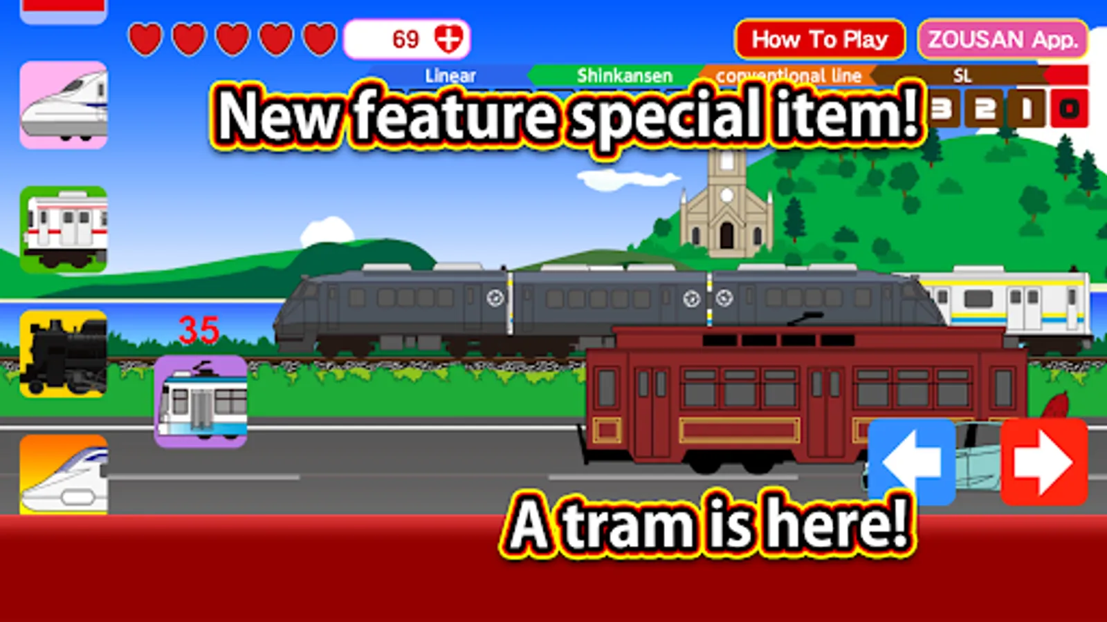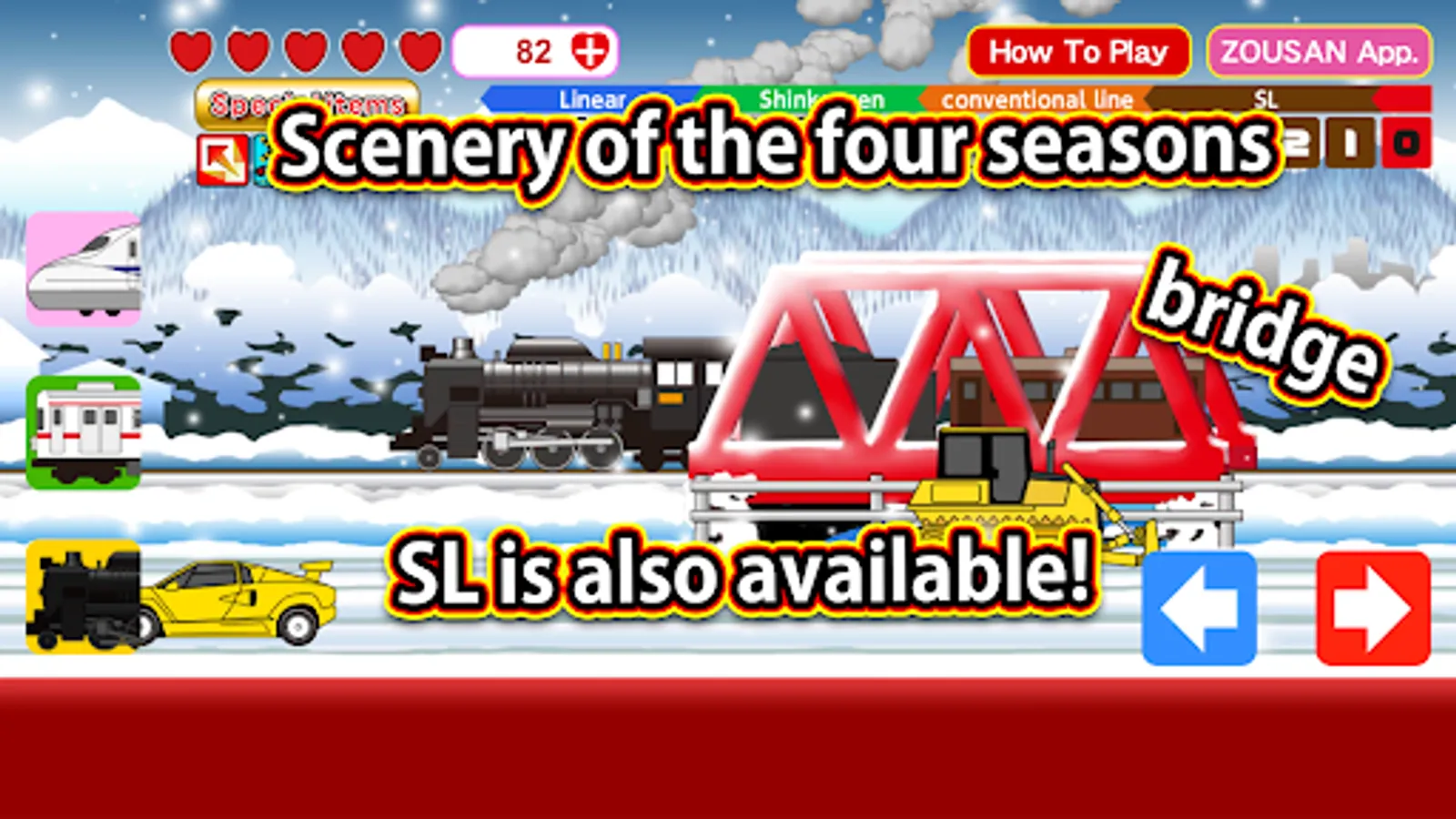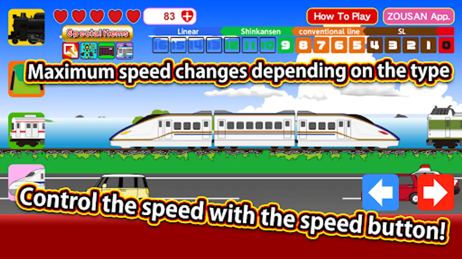 It is a train simulator that adjusts the speed and runs the train by tapping the right and left arrow icons.