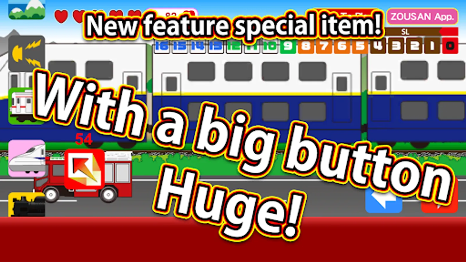 1. "Big Button": Tap this icon to make trains and bullet trains huge in two stages.