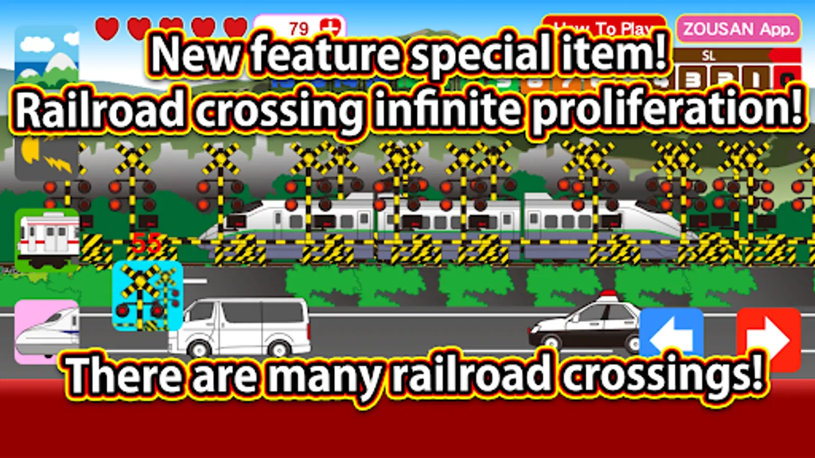 2. "Fumikiri": Tap this icon to open as many railroad crossings as you like.