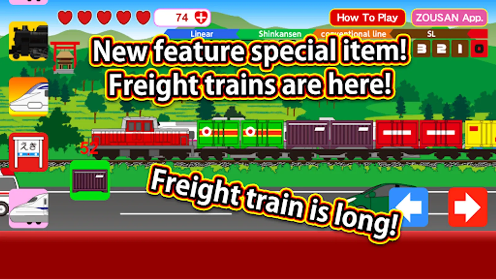 3. "Freight Train": Tap this icon to pass the freight train.