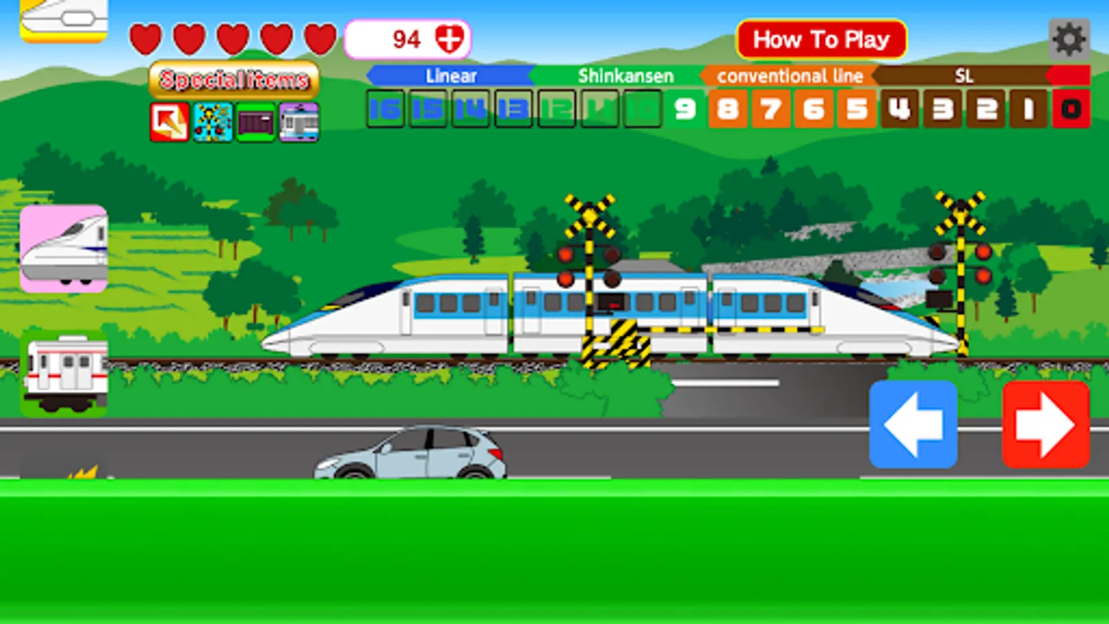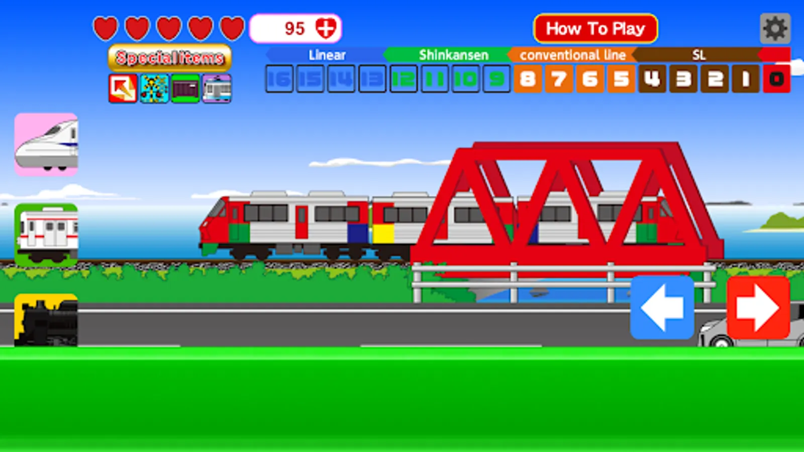 It is a train simulator that adjusts the speed and runs the train by tapping the right and left arrow icons.