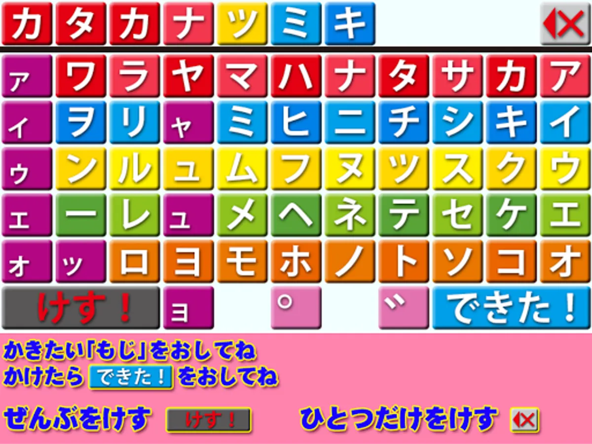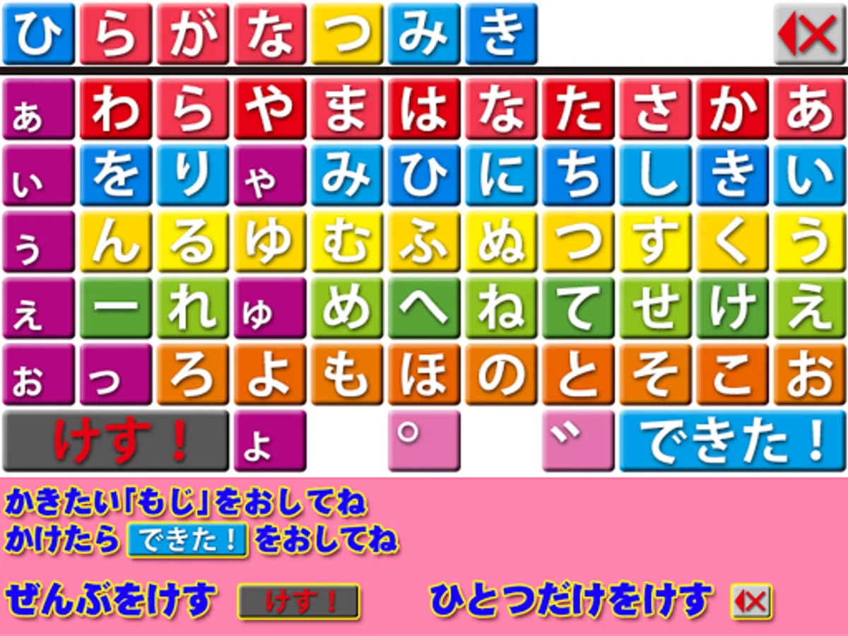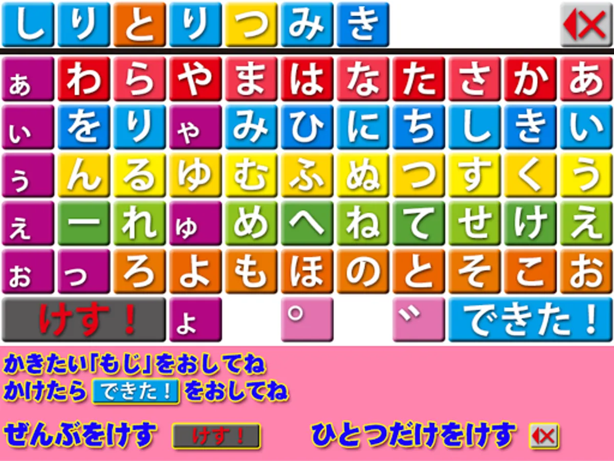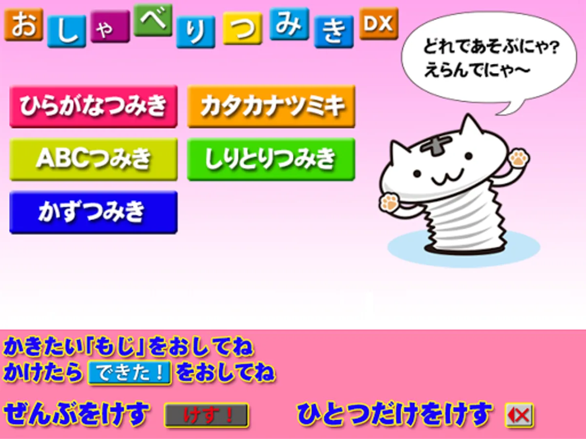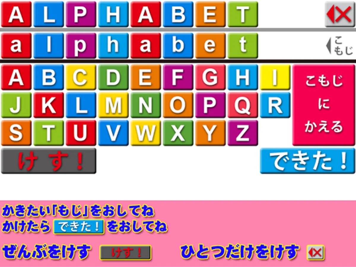 You can play with hiragana, katakana, and alphabet letters by arranging blocks to make words.