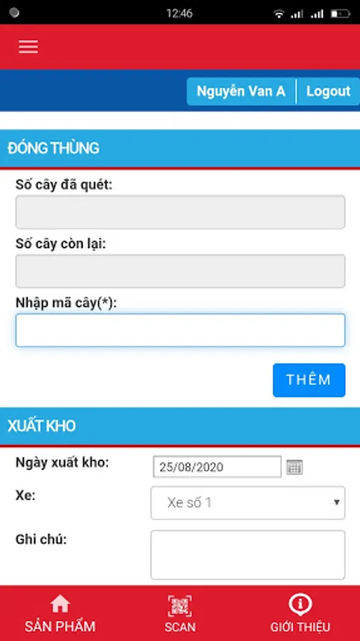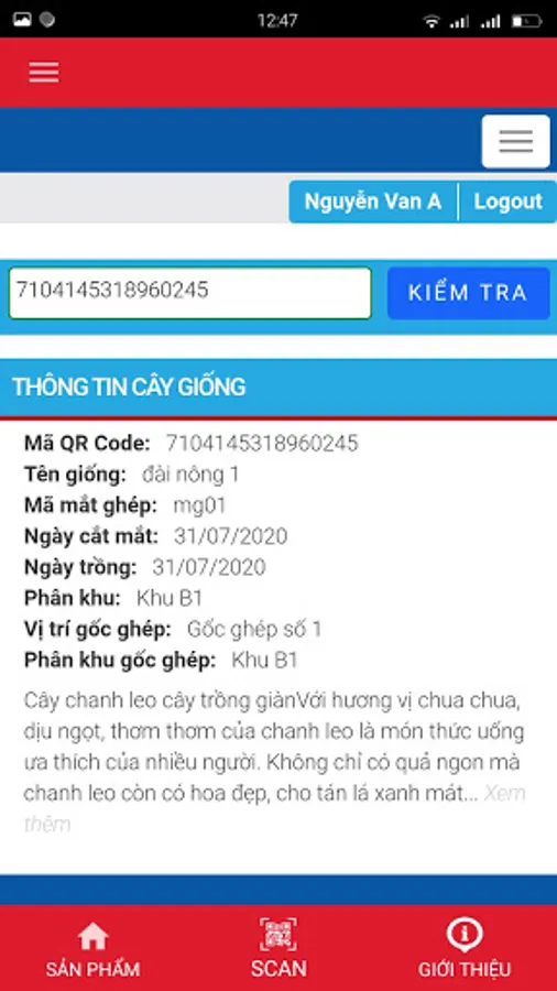 Mobile App of the qrcode management system for Nafoods company with features tailored to work well on handheld devices