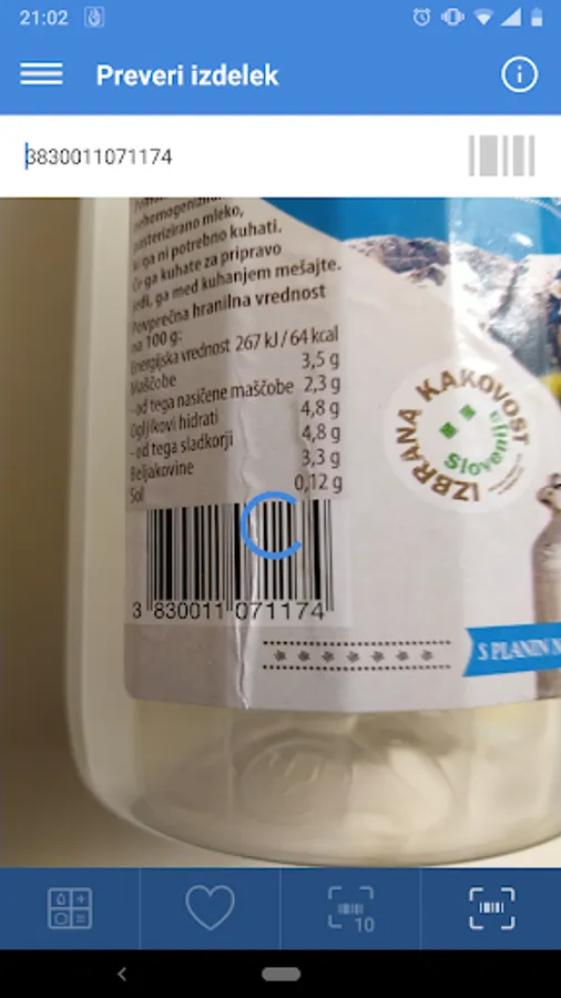 The application is linked to a comprehensive database that contains information on the composition of foods: use a smart phone camera to capture the barcode of the food, and the application will show you information about its nutritional value to help you select food.