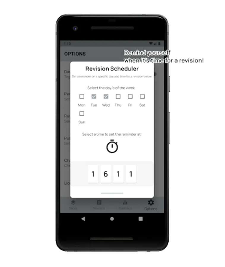 - Set reminders across the week at the indicated time to remind yourself for a revision session, as StudyBuddy will always be your study-buddy.