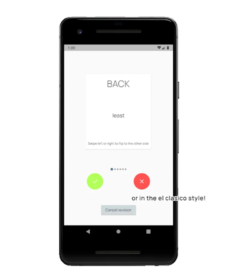 - Go about your revision in an input-validation style, or via the clásico style of flipping the flash card virtually for validation.