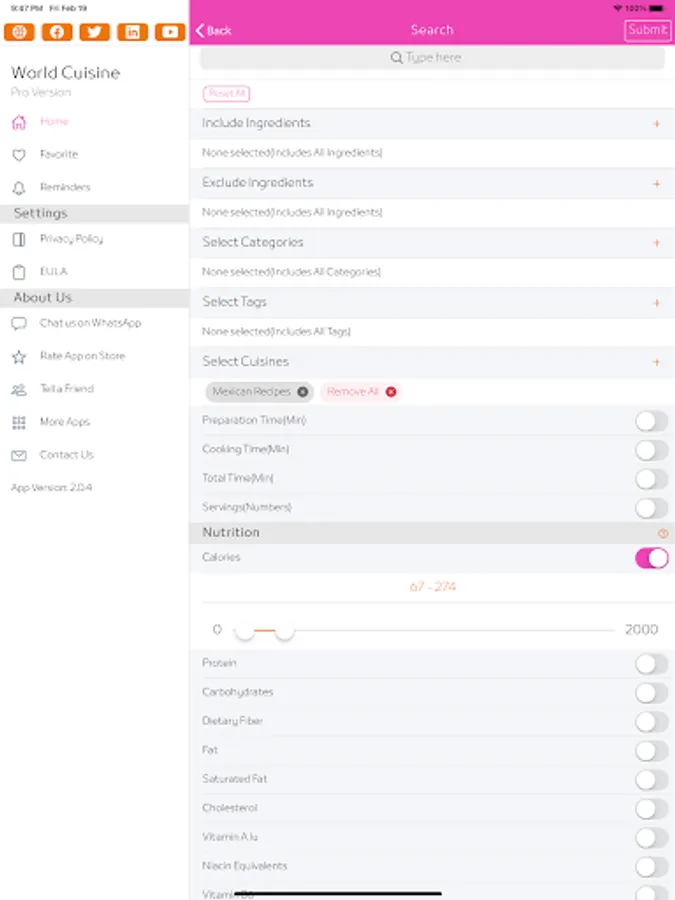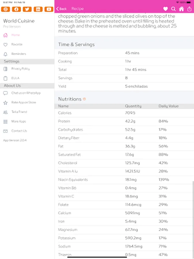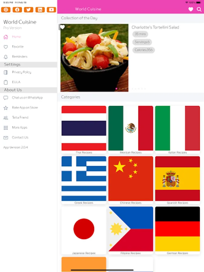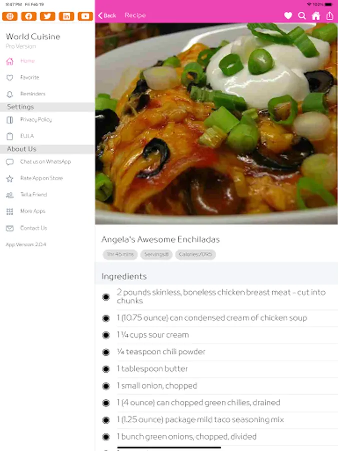 Apart from that this recipes app includes hot curries with a variety of chilies and a side of raita to cool down from German, the world-famous Italian pasta and pizzas, the hot and spicy Mexican food, from famous Chinese noodles to japan sushi, and more.