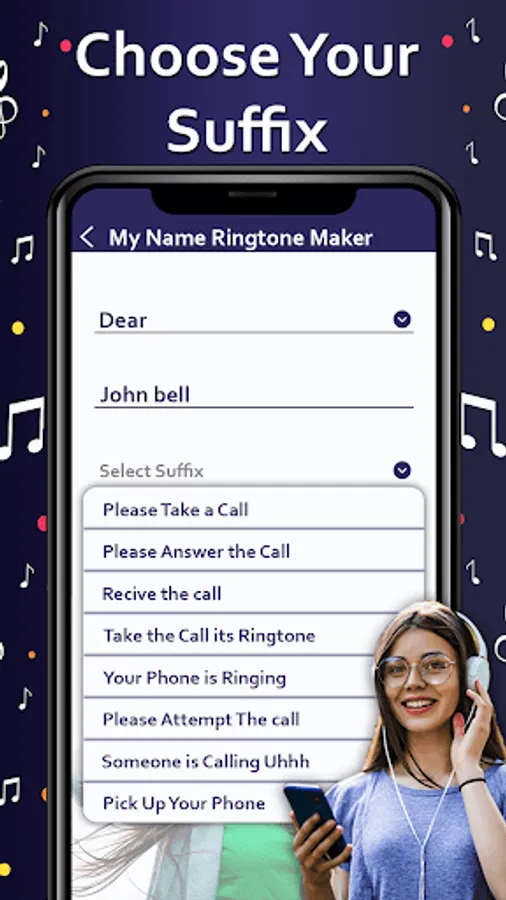 Generate your name ringtone with music. My Name Ringtone Maker creates personalised caller name ringtone in seconds. Name Ringtone maker provides you easiest way of making personalised ringtones of your name!
