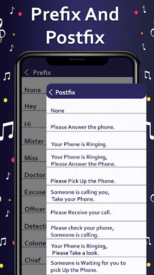 Manually write your name or funny name then select POSTFIX or PREFIX from different options like “Please Pick Up Call, Friend is calling….” & you can get call with friend’s name if set as ringtone before. after creating name ringtone.
