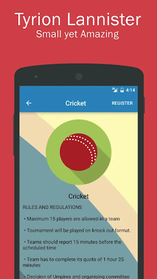 • Registration Portal - All the Registration for all the Games will be accepted through app. So don't wait till last for registration.