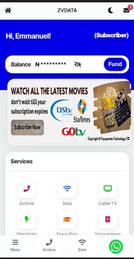 We offer instant recharge of Airtime, Databundle, CableTV (DStv, GOtv & Startimes), Electricity Bill Payment and more.