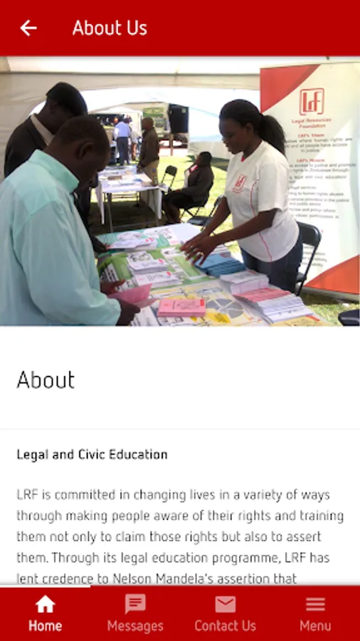 This LRF Legal Aid Application is a platform which aims to assist the public to navigate through the justice delivery system. The Application provides a step-by-step guide to people who are preparing to go to court either as the plaintiff or defendant. The App also provides links to the LRF website for users to access samples of documents that are required for presenting their case. The court ready documents encompass legal information on maintenance claims; bail applications; domestic violence; deceased estates disputes; property rights disputes and peace orders.