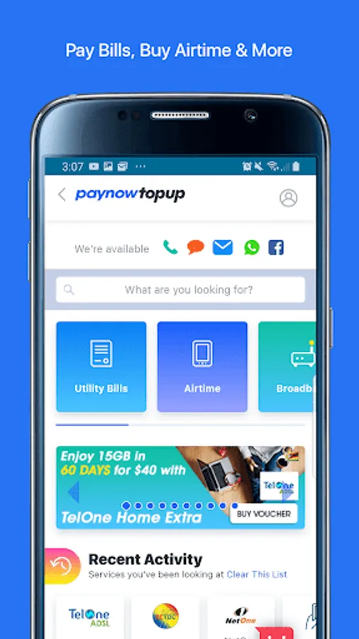 Conveniently Buy Mobile Data Bundles Vouchers including NetOne One Fusion, TelOne Blaze & More, using a payment method of your choice. Acceptable payment methods include VISA, Mastercard, Zimswitch, Ecocash, OneMoney & Telecash.