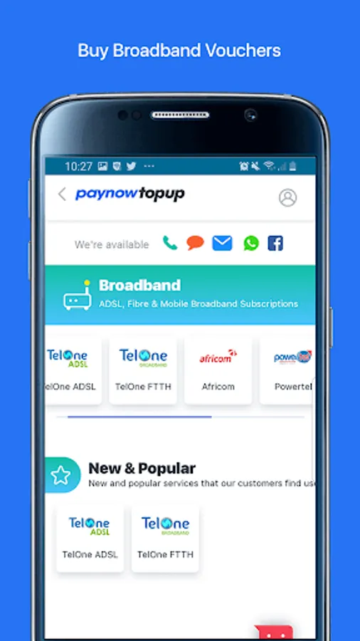 Conveniently Buy Broadband Vouchers including TelOne ADSL, TelOne FTTH, Africom & More, using a payment method of your choice. Acceptable payment methods include VISA, Mastercard, Zimswitch, Ecocash, OneMoney & Telecash.