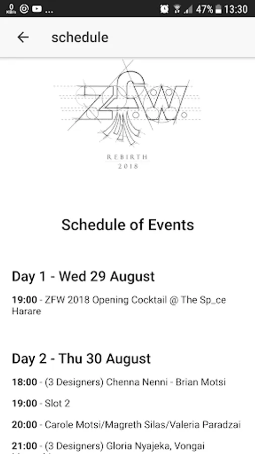 A mobile application for the 2018 edition of Zimbabwe Fashion Week