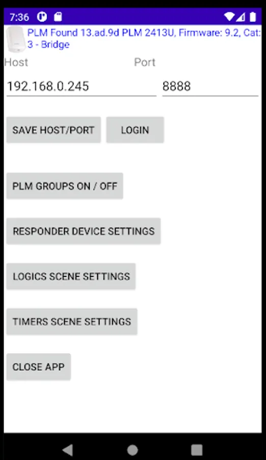 App for accessing Linknet Insteon Software Data Server (USES PLM )