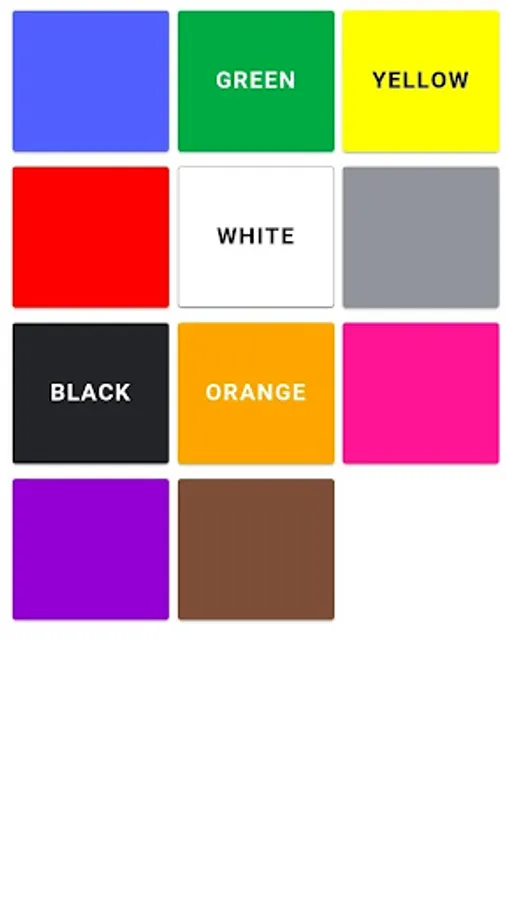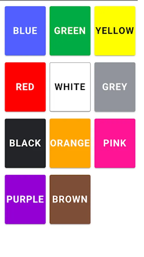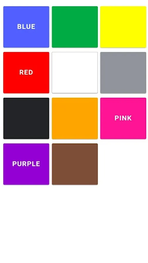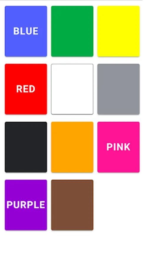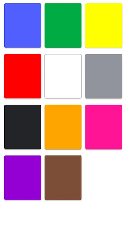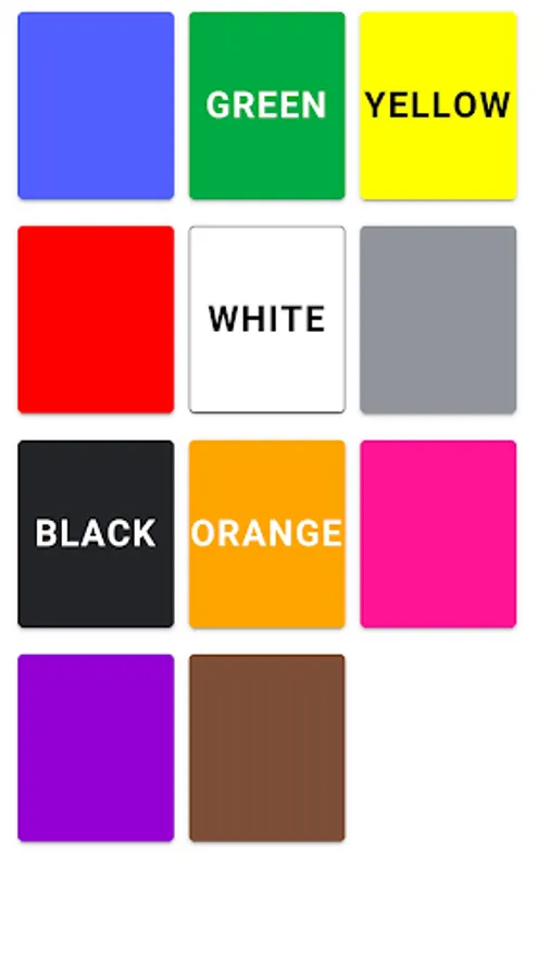 Color Names for Kids est une application conçue pour les tout-petits et les enfants pour apprendre les 11 couleurs : bleu, vert, jaune, rouge, blanc, gris, noir, orange, rose, violet et marron en anglais avec image et voix.