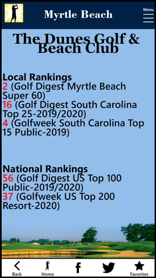 • Local and National Rankings by Golf Digest and Golfweek
