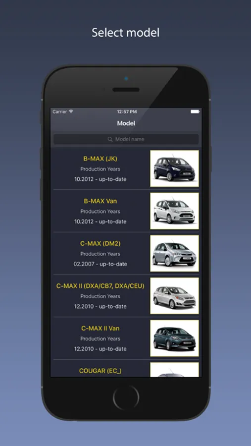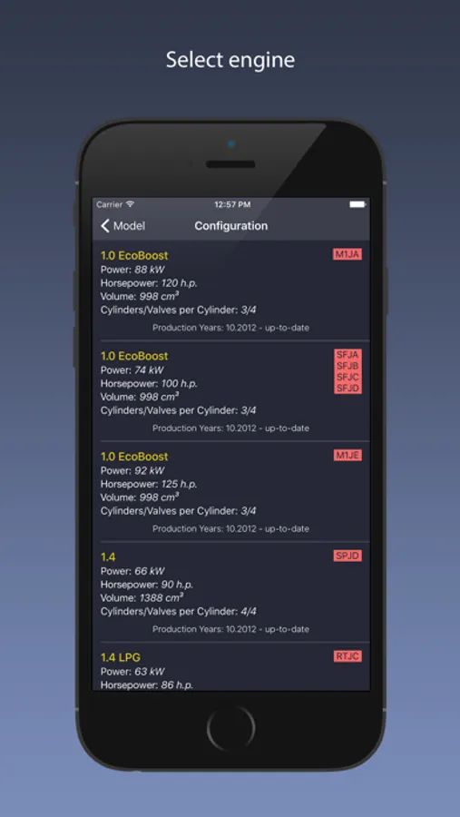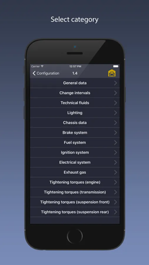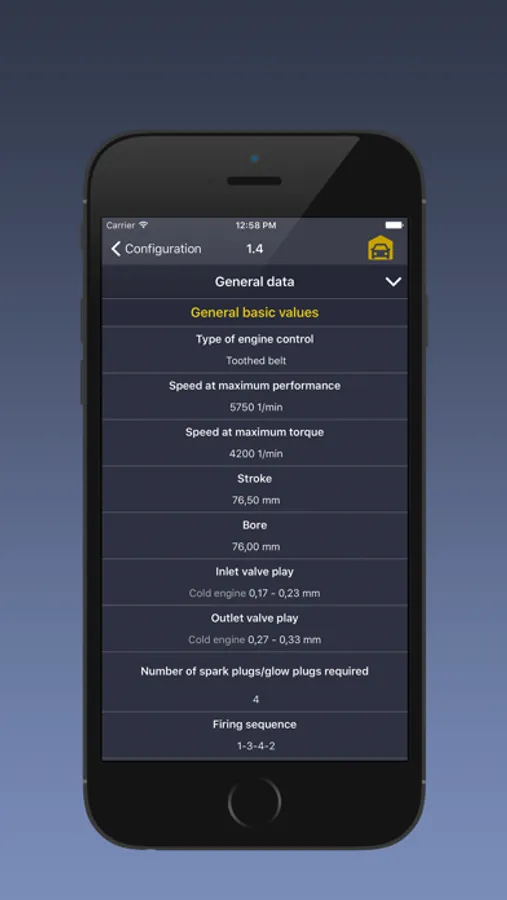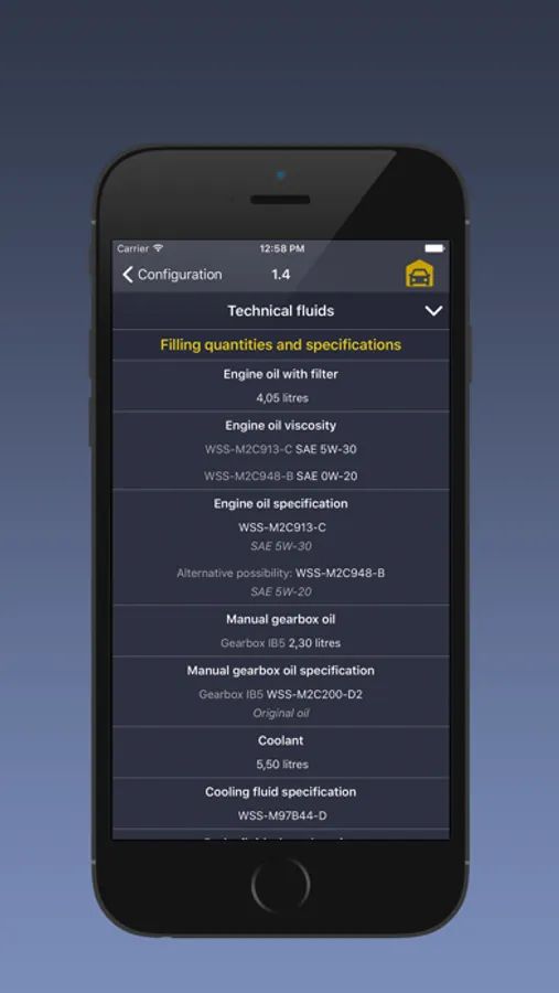 The application contains technical information that will help you in the repair and maintenance of your car.
