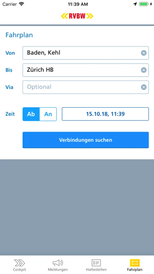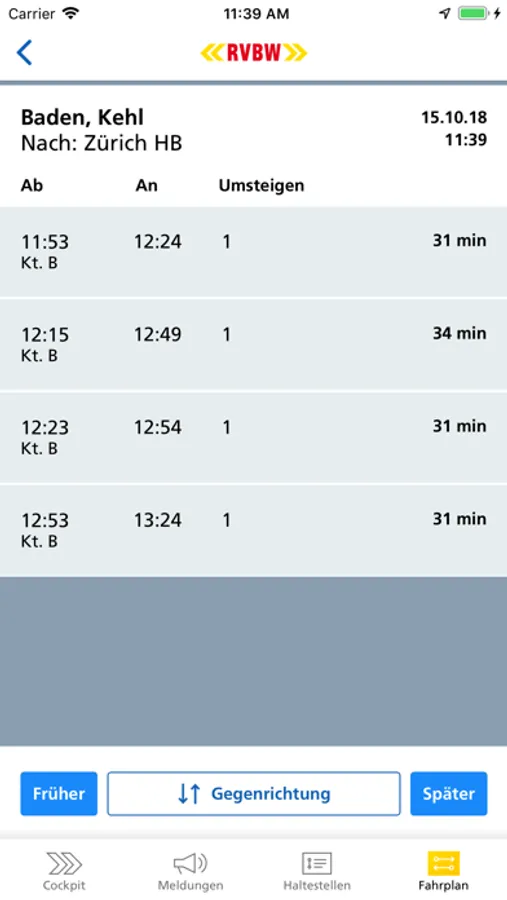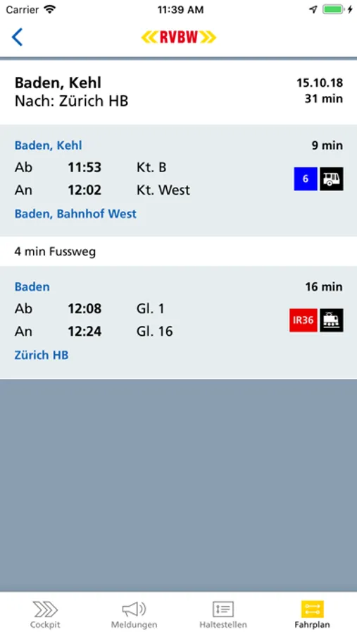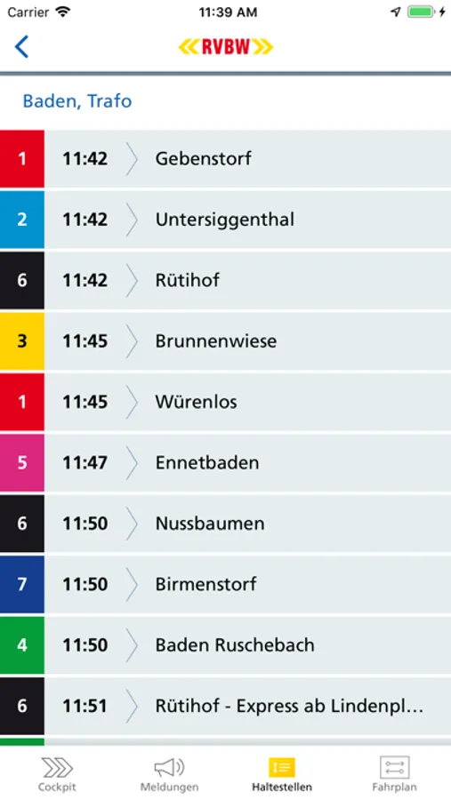 Mit der App der Regionalen Verkehrsbetriebe Baden-Wettingen sehen Sie auf einen Blick alle Abfahrten in Echtzeit ab einer Haltestelle im Liniennetz der RVBW. Während der Fahrt mit einem Bus der RVBW sehen Sie automatisch den aktuellen Kurs inklusive den Ankunftzeiten an den jeweiligen Haltestellen. Neben den Informationen zu den Fahrten bietet Ihnen die App auch Zugriff auf die aktuellen Betriebsmeldungen. Sie können ebenfalls pro Linie einstellen, ob Sie eine Meldung als Push Notification erhalten möchten.