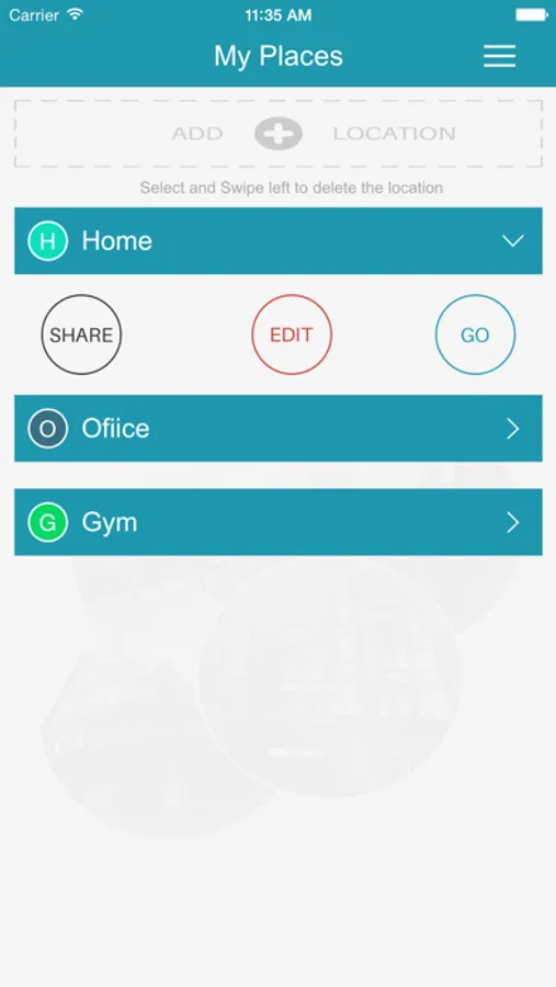> Select a saved location and share it with your friends or family