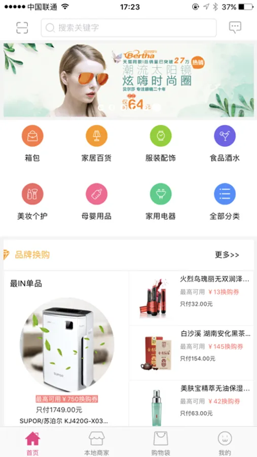 【品类丰富】上千款品牌优品,涵盖服饰、家居、母婴、家电、鞋包等10个品类,换您所需,低价换购您心仪之物。