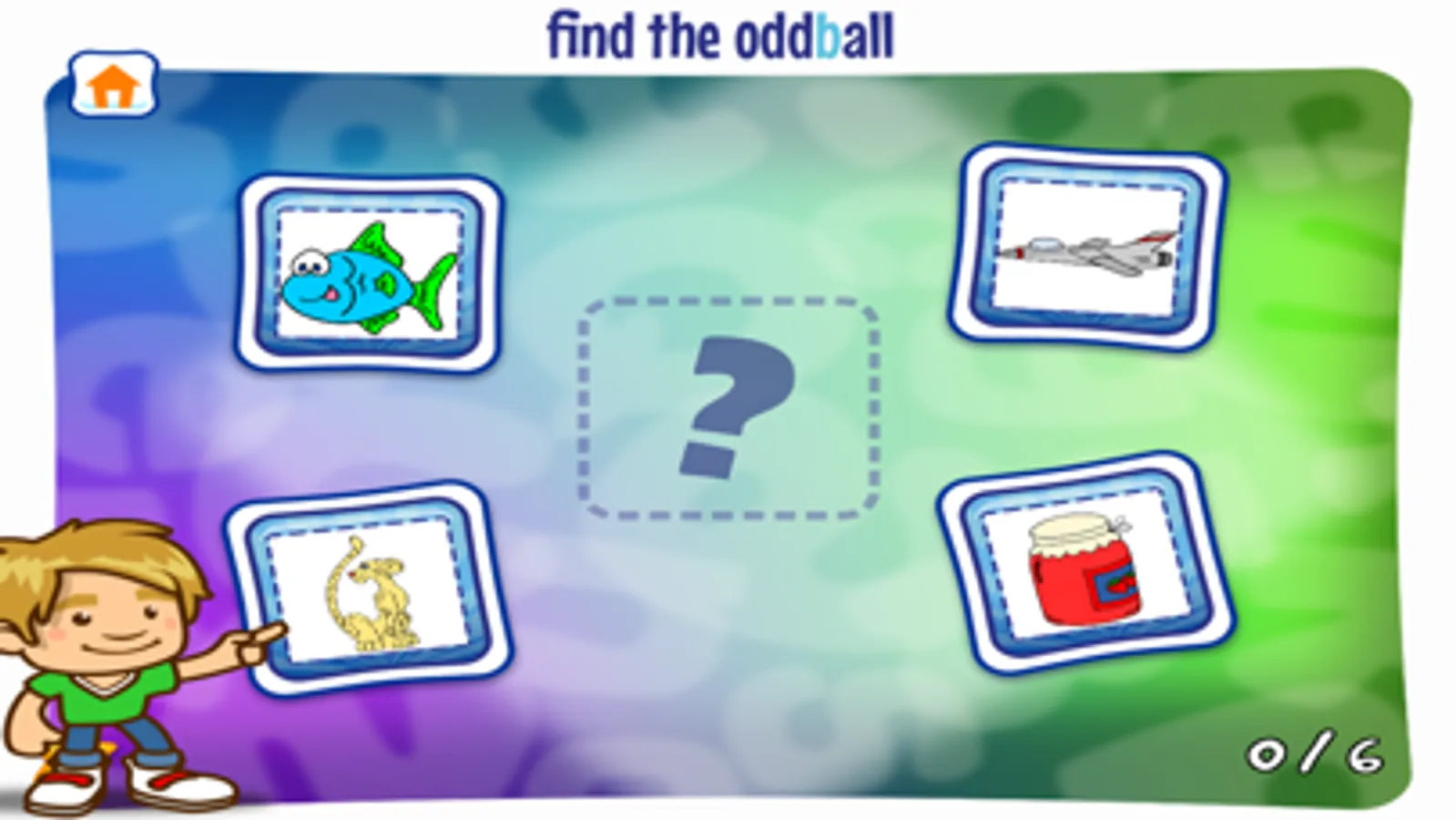 2. Find It! - Players are shown four pictures and asked to find the one picture that has a different sound than the rest.