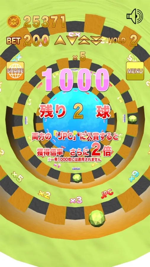 このボールを3つ落とすことで、物理抽選の「クルーンチャレンジ」に発展します。