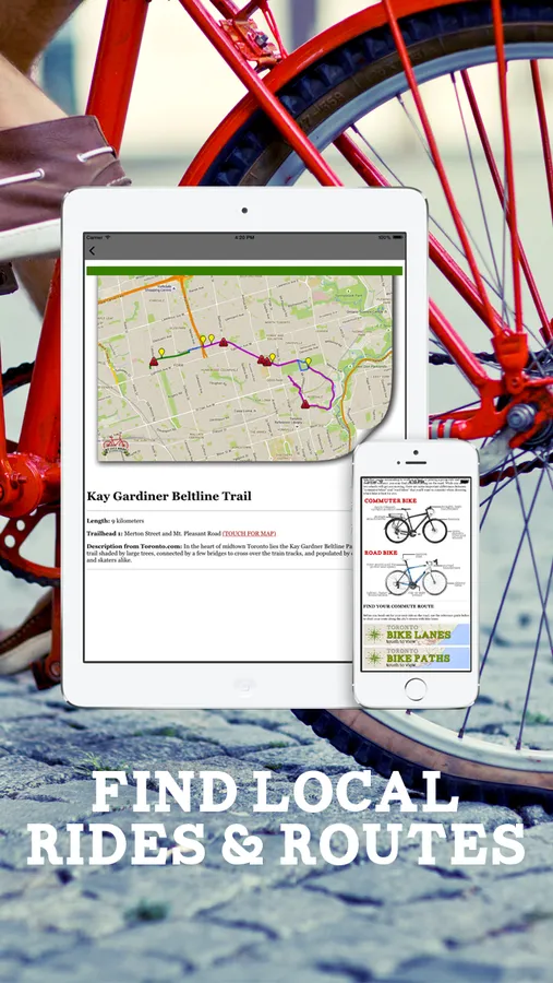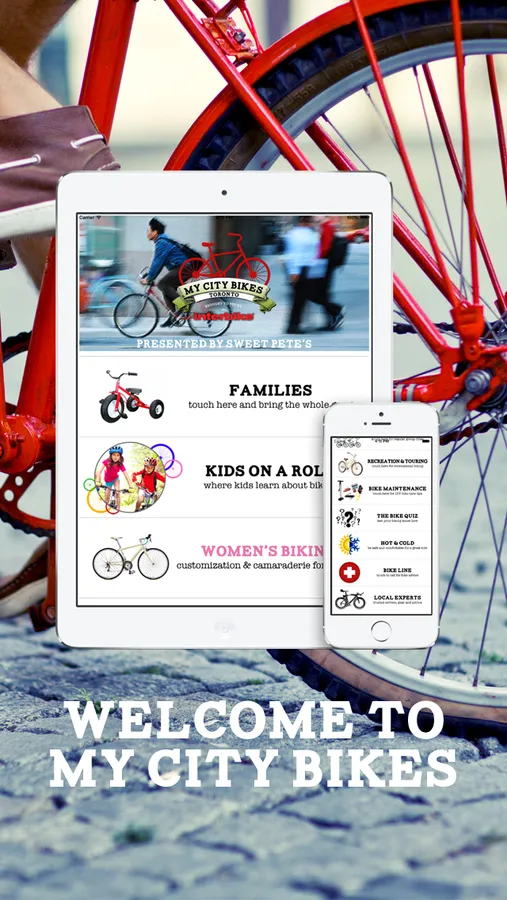 Daily fitness and wellness is as easy as riding a bike! My City Bikes Toronto is a community resource for residents and visitors of Toronto and Markham in Ontario, Canada to find local cycling routes for transportation, road biking, mountain biking and sightseeing. My City Bikes Toronto encourages you to hop on a bike and ride for fitness, transportation or just plain fun with this pocket guide that will help you find just what you need to get on the bike. Make biking a part of your lifestyle to improve your overall health, the health of the community and the environment. Learn the basics of bikes and maintenance with advice from Sweet Pete's bike shop and Station Ski & Ride, and keep up on the latest local bicycle access and infrastructure. Understand the difference between road, mountain, commuter and cruiser bikes, pick your favorite and go for a ride!