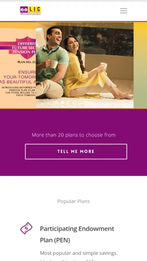 1. HOME PAGE: It consists of all the popular plans of L.I.C (Intl.). By just clicking any link (plan) one can see all the important information/features of that plan.