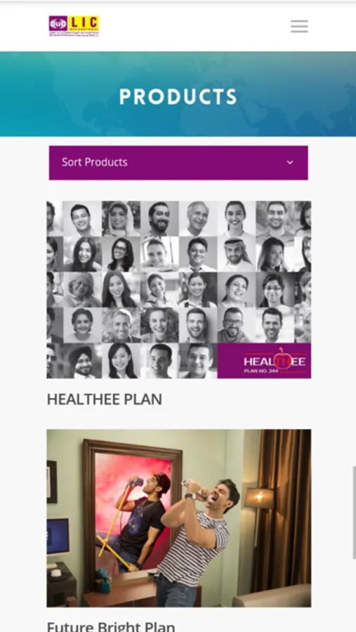 2. PRODUCTS: This section contains all the plans of L.I.C (Intl.) divided in categories.The categories are whole life, endowment, health cover, investment, joint life, money back, pension, term assurance and ULIP plans. Details of all the existing plans are given for each plan. Customer/policy holder can view different plans depending upon the choice of category.