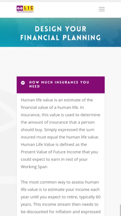 4. HLV CALCULATOR : With this option any existing policy holder or the prospective customer can check his human life value to buy insurance for himself and to check whether he/she is adequately insured.