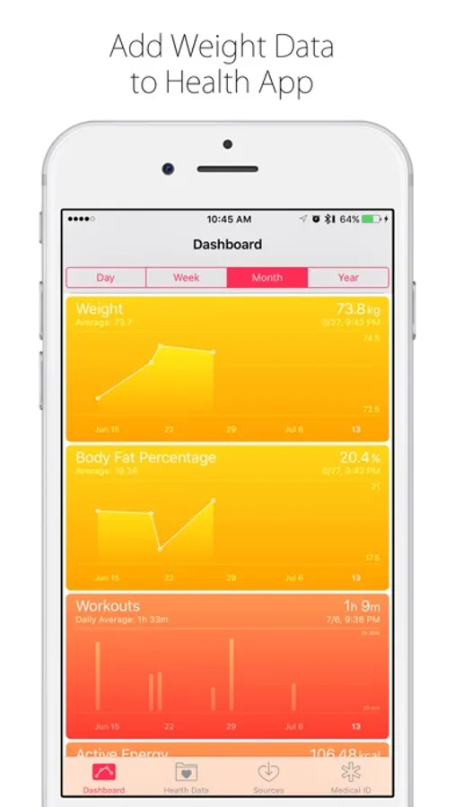 Weight+ can register Body mass data Point to Health app for Apple Watch.