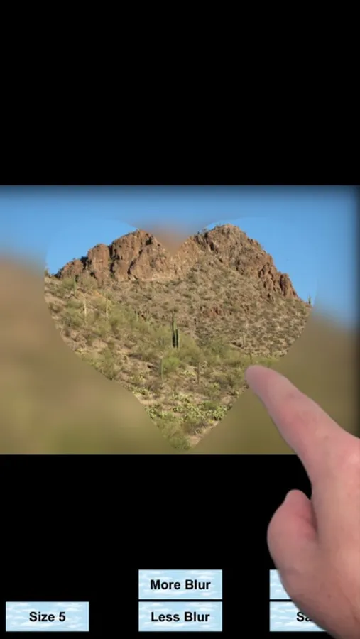 Blur any of your photos and simply wipe your finger across to erase the blur, making items in the foreground clear. You can adjust the blur thicker or thinner, and can adjust your finger wipe thickness larger or smaller. This blur effect can be used to blur out faces or make parts of the photo stand out more clearly, while the rest of the photo remains blurred. To reset and start over, simply select photo again.