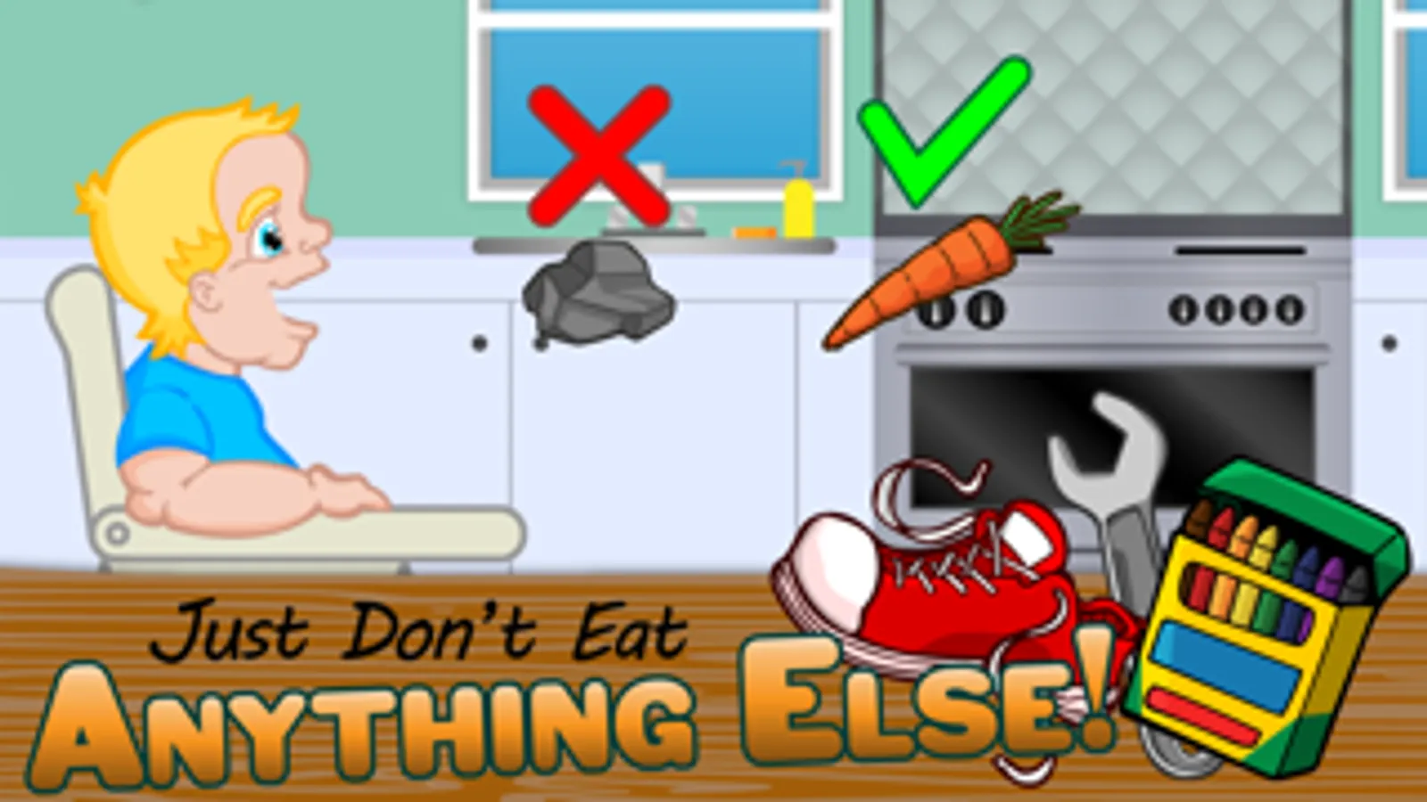 Play with 6 unique unlockable characters, each with 3 levels of difficulty including; 1 & 1, Multiple Vegetables, and with Distractions! Make sure you keep your baby from being distracted by swiping or tapping away dogs, flies, disco music, earthquakes, asteroid fields, sudden thunderstorms, and UFO’s.