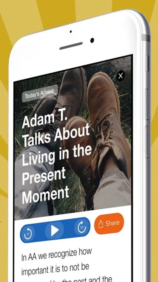 Listen to short 5 minute "nuggets" of experience strength and hope from thousands of AA speakers around the world. Start by reading a powerful and motivating inspiration message then take a pause in your day for 5 minutes to hear another member of Alcoholics Anonymous share what it was like and how it works today.