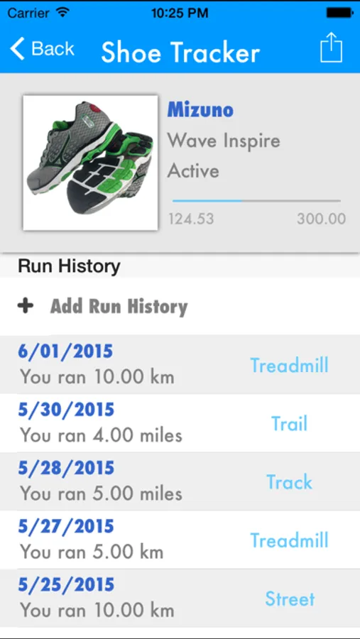 Shoe Tracker helps you keep track of your miles/km you've run with your different pairs of shoes so you know when it's time to replace them. The general rule of thumb for running shoes is to replace them after you've run in them for 300-500 miles. Shoe Tracker helps you keep track of this distance and even helps you find replacement shoes when you're ready.