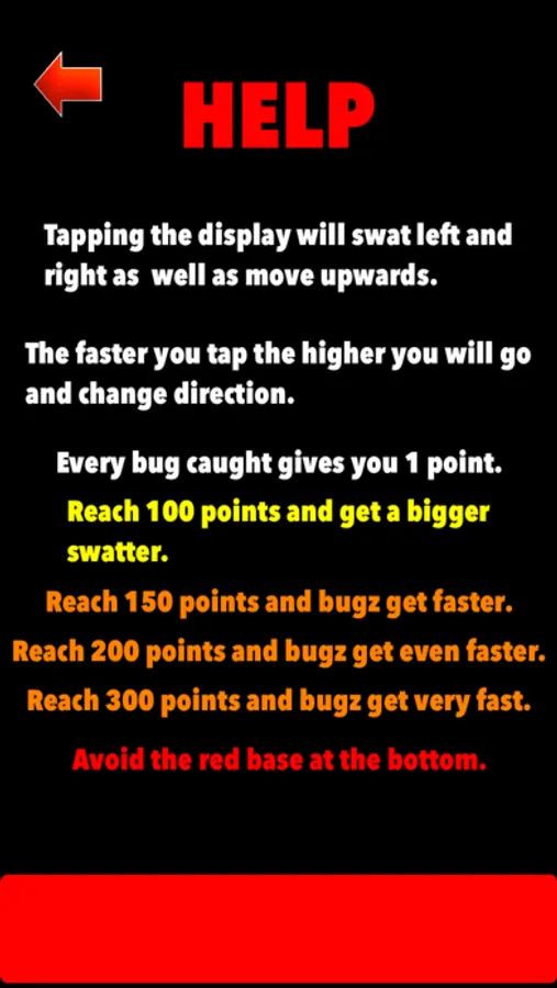 Tap anywhere to keep the swatter off the ground and swat the bugs before they get to the ground.